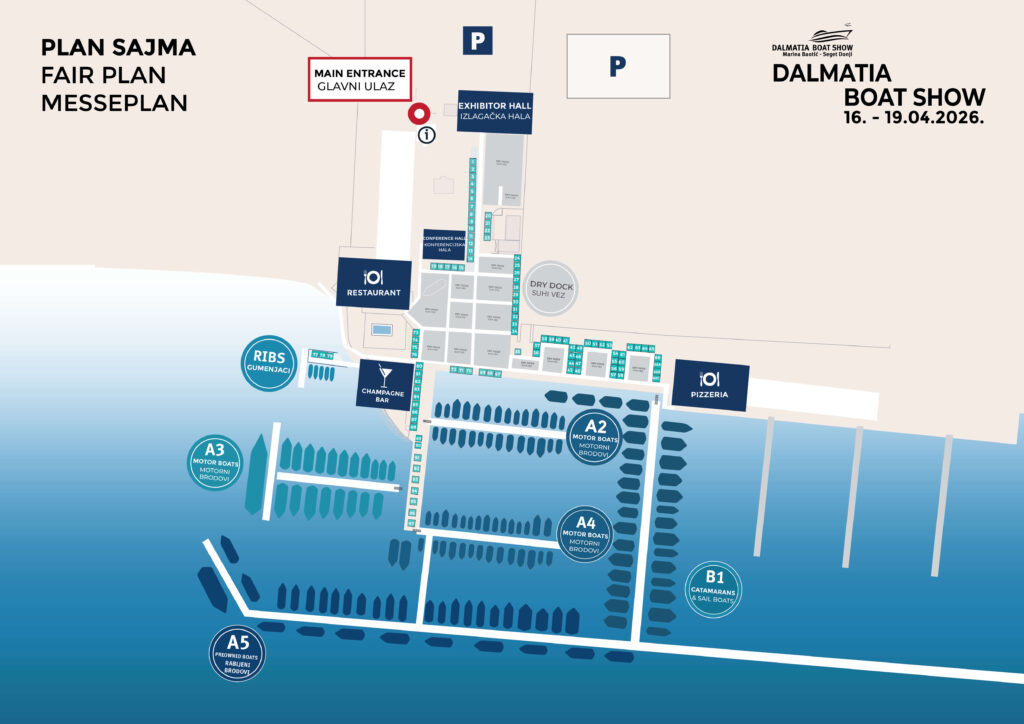 Od 16. do 19. travnja 2026. godine, Marina Baotić u Segetu Donjem postat će epicentar nautičkog svijeta. Na Dalmatia Boat Show-u, očekuju vas najnoviji modeli luksuznih jahti, motornih brodova, i katamarana renomiranih brendova. Izlagači će imati priliku premijerno predstaviti nove modele brodova na hrvatskom tržištu, dok će brojni profesionalci iz industrije razmjenjivati iskustva i poslovne prilike. Očekujemo više od 12.000 posjetitelja, 200 brodova i 150 izlagača. Edukativna predavanja i ekološke radionice također su dio ovog spektakularnog događaja.